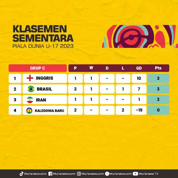 Klasemen Grup C sendiri kemungkinan akan berubah lagi, karena Inggris U17 dan Iran U17 akan memainkan laga kedua mereka pada pukul 19.00 WIB.