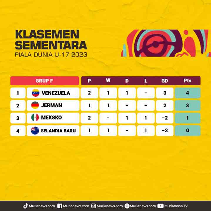 Murianews, Kudus – Pertandingan penyisihan Grup F Piala Dunia U17 antara Meksiko U17 vs Venezuela U17 berakhir imbang. Pada pertandingan yang berlangsung di Stadion Si Jalak Harupat ini, skor berakhir denga 2-2.