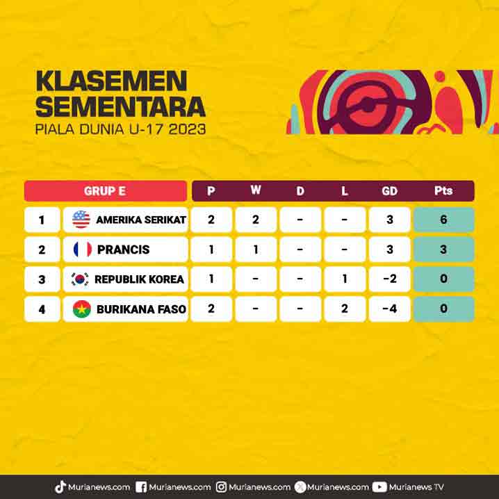 Murianews, Kudus – Tim Amerika Serikat U17 sangat dekat dengan fase gugur Piala Dunia U17 2023. Kepastian ini mereka dapatkan setelah merebut kemenangan dari Burkina Faso U17 di penyisihan Grup E.