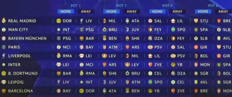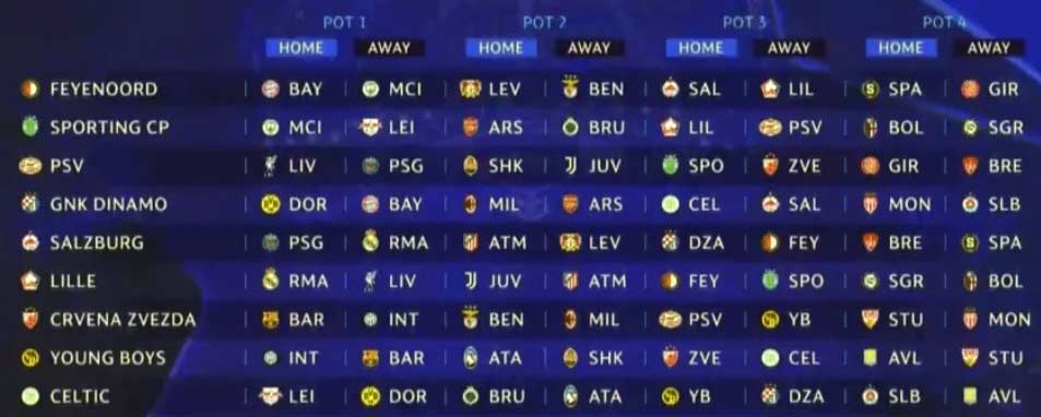 Seperti yang diharapkan UEFA, dengan 36 tim yang berpartisipasi dan format kompetisi baru, hasil undian untuk babak penyisihan grup Liga Champions memunculkan banyak partai menarik.