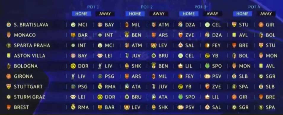 Berikut hasil Drawing Liga Champions 2024-2025: