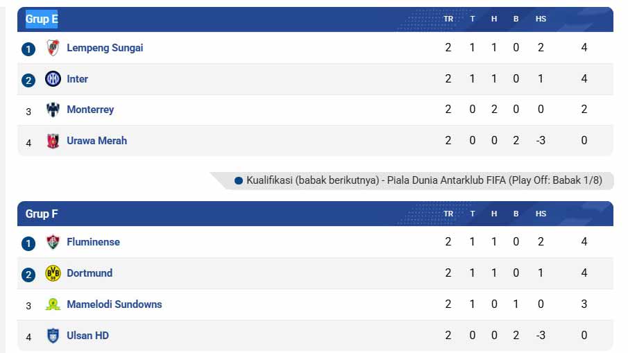 Klasemen Sementara Grup E dan F Piala Dunia Antarklub 2025: