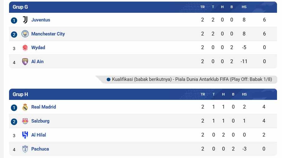 Klasemen Sementara Grup G dan H Piala Dunia Antarklub 2025: