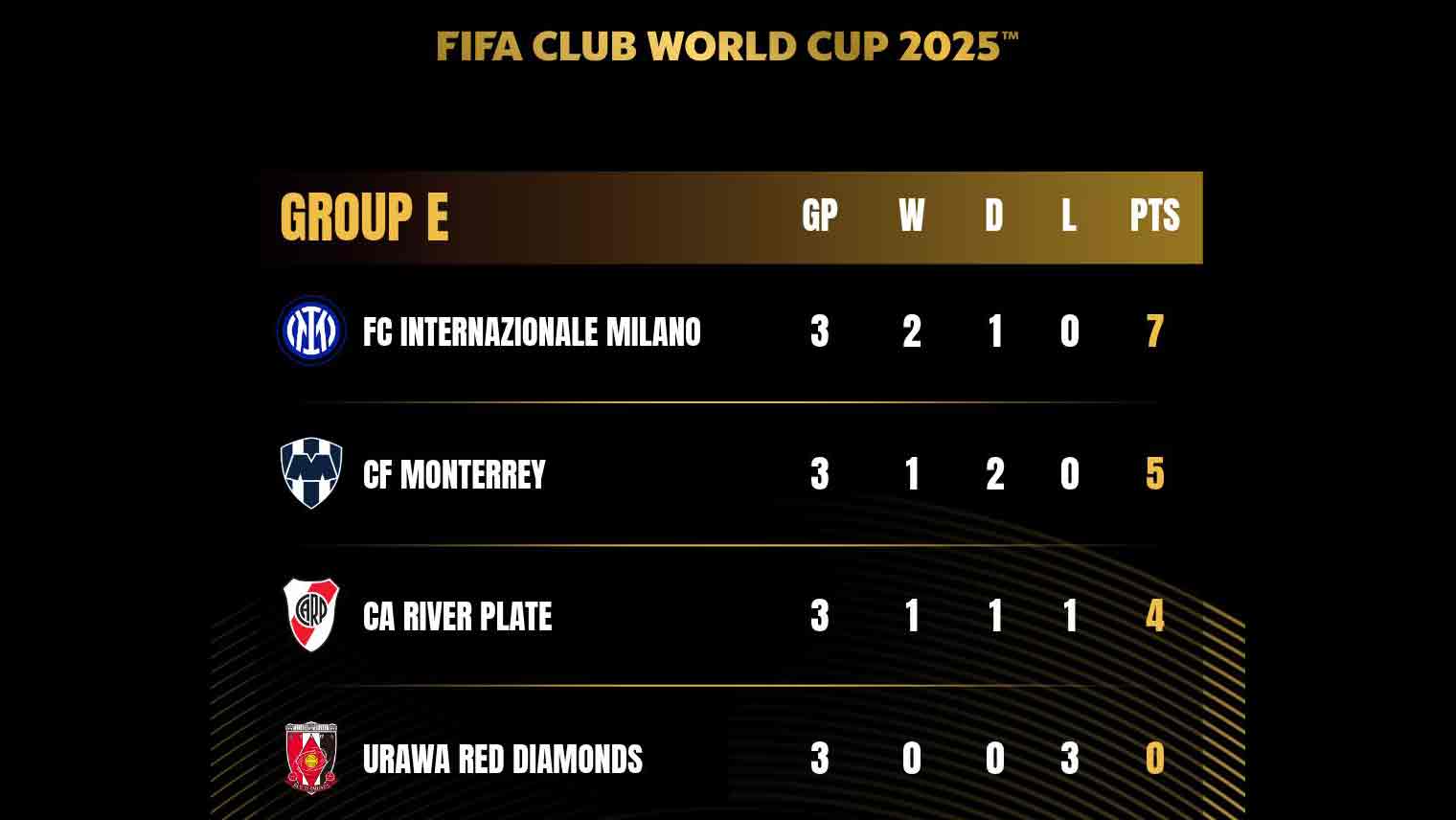 Berikutnya dari Grup E, Inter Milan dan CF Monterey akan menjadi wakil di babak 16 Besar Piala Dunia Antarklub 2025. Mereka akan menghadapi wakil dari Grup F yang telah direbut Borussia Dortmund dan Flumenense.