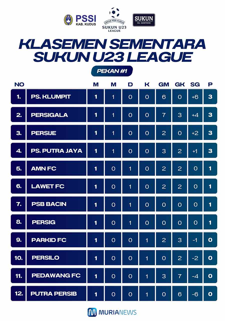Murianews, Kudus – Pertandingan Liga 1 PSSI Kudus bertajuk Sukun U23 League pekan pertama selesai diselenggarakan selama dua hari sejak Sabtu hingga Minggu (4-5/5/2024).