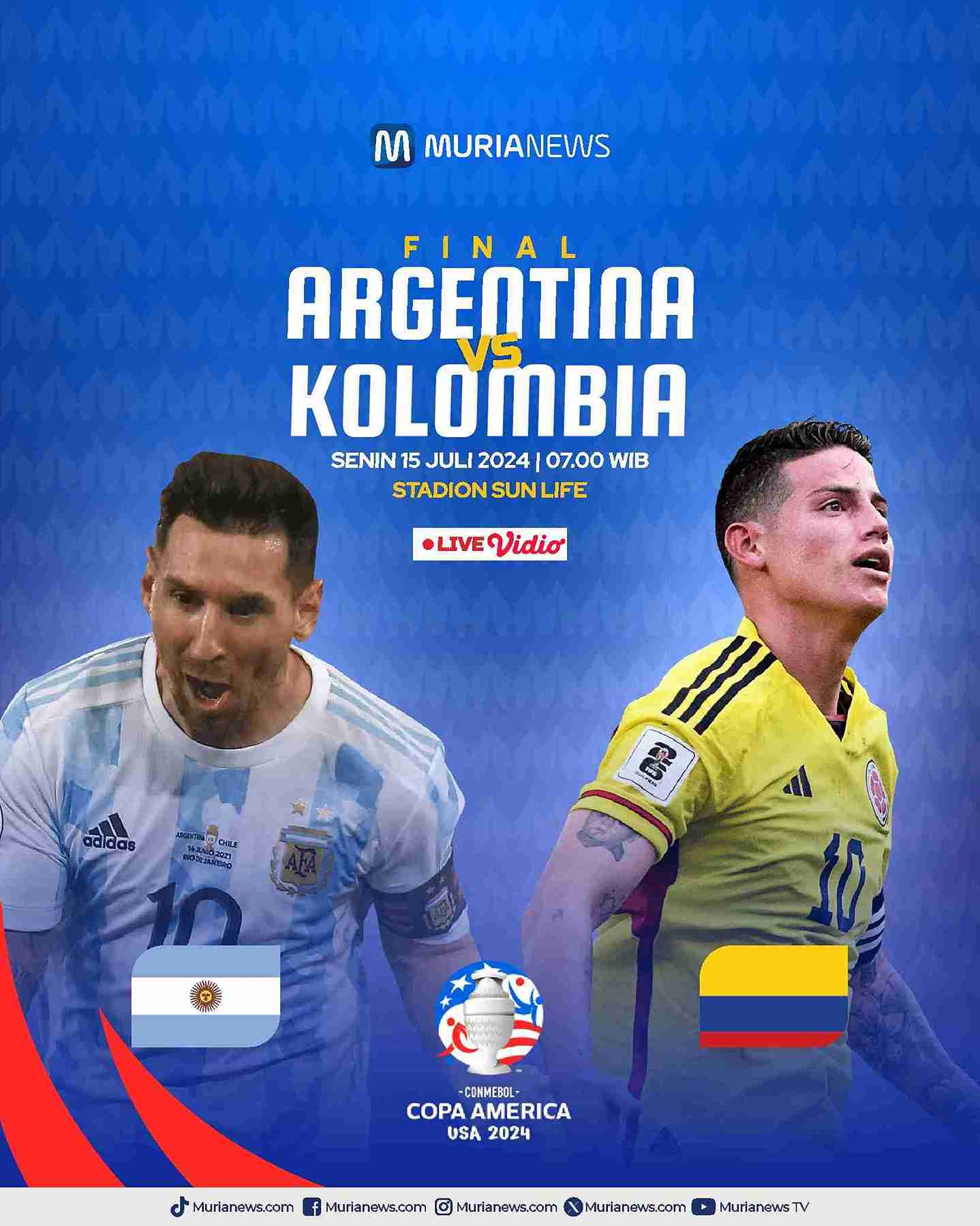Berikut jadwal siaran final Copa America 2024 Argentina vs Kolombia: