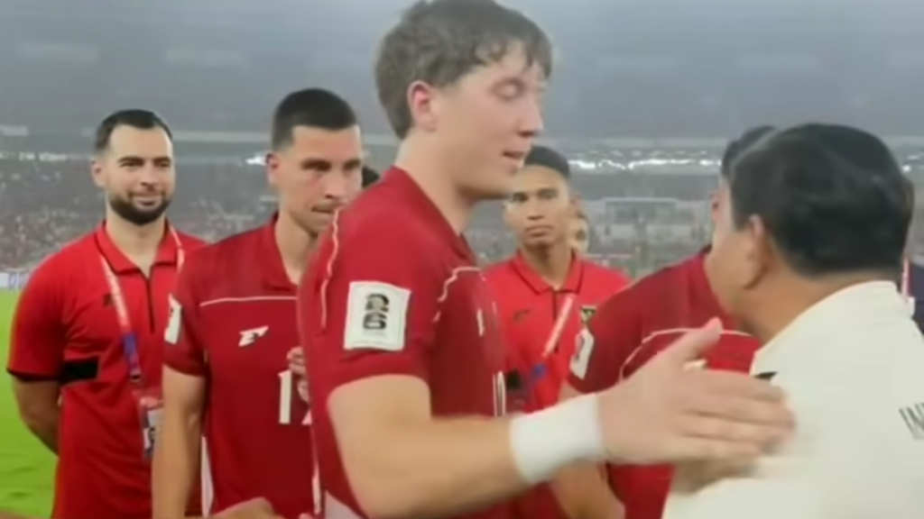 Momen itu terjadi saat Presiden Prabowo turun ke lapangan untuk memberikan ucapan selamat pada para pemain Timnas Indonesia.